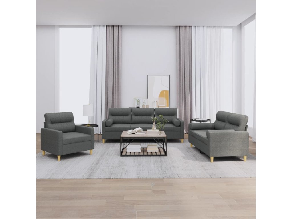 3dílná sedací souprava s polštáři tmavě šedá textil 3201553