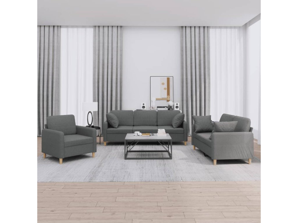 3dílná sedací souprava s polštáři tmavě šedá textil 3202071