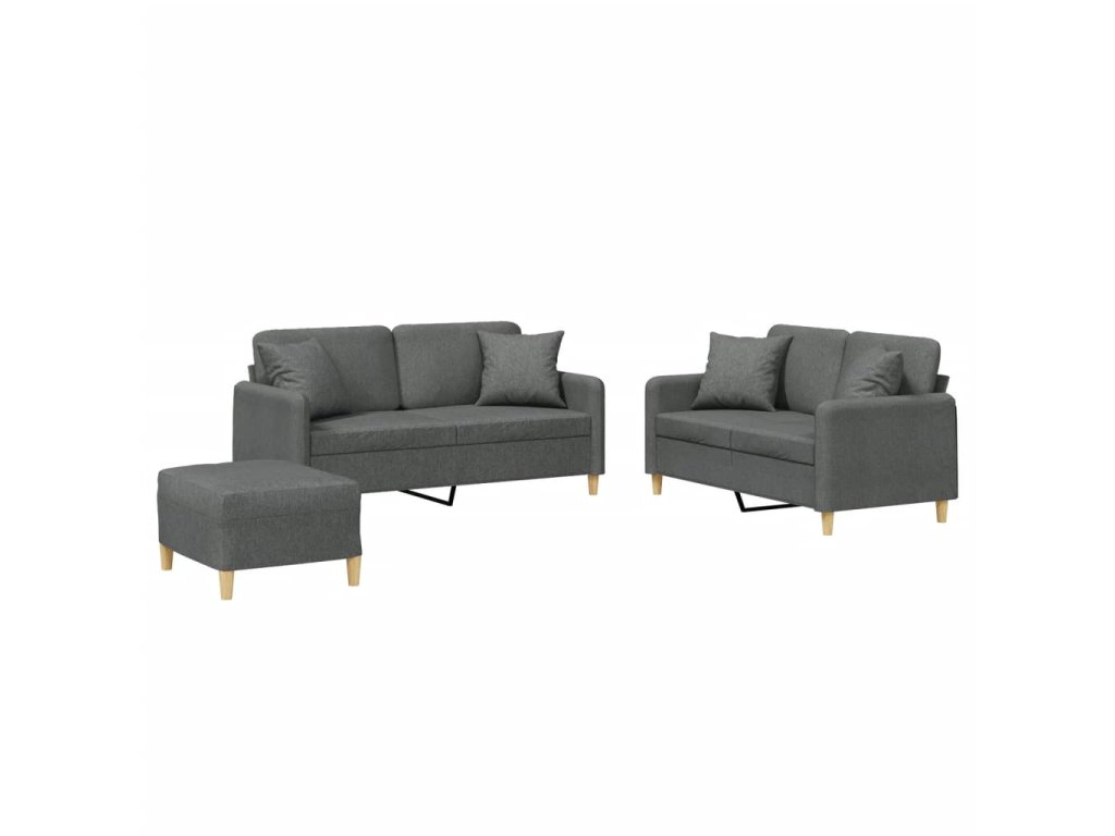 3dílná sedací souprava s polštáři tmavě šedá textil 3202111