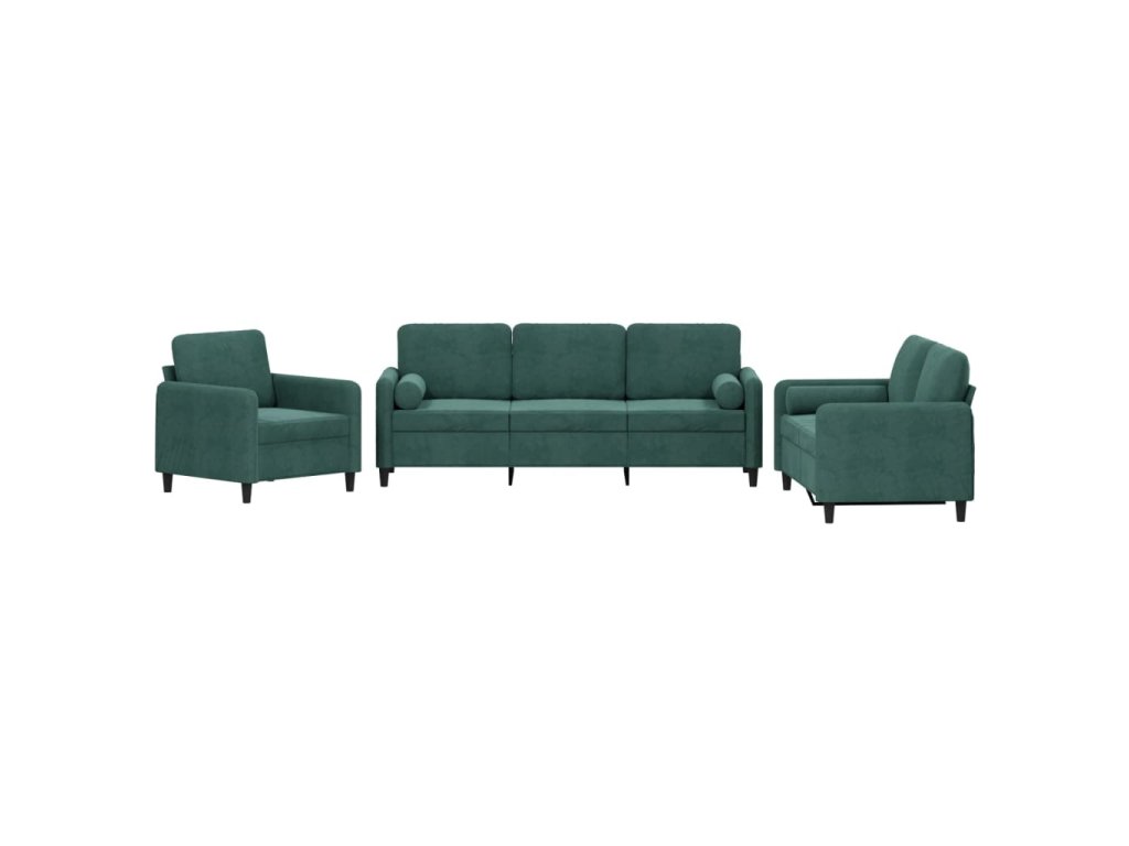 3dílná sedací souprava s polštáři tmavě zelená samet 3201956