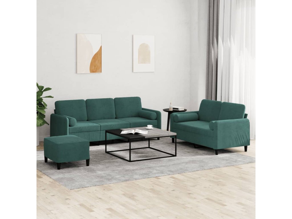3dílná sedací souprava s polštáři tmavě zelená samet 3202046