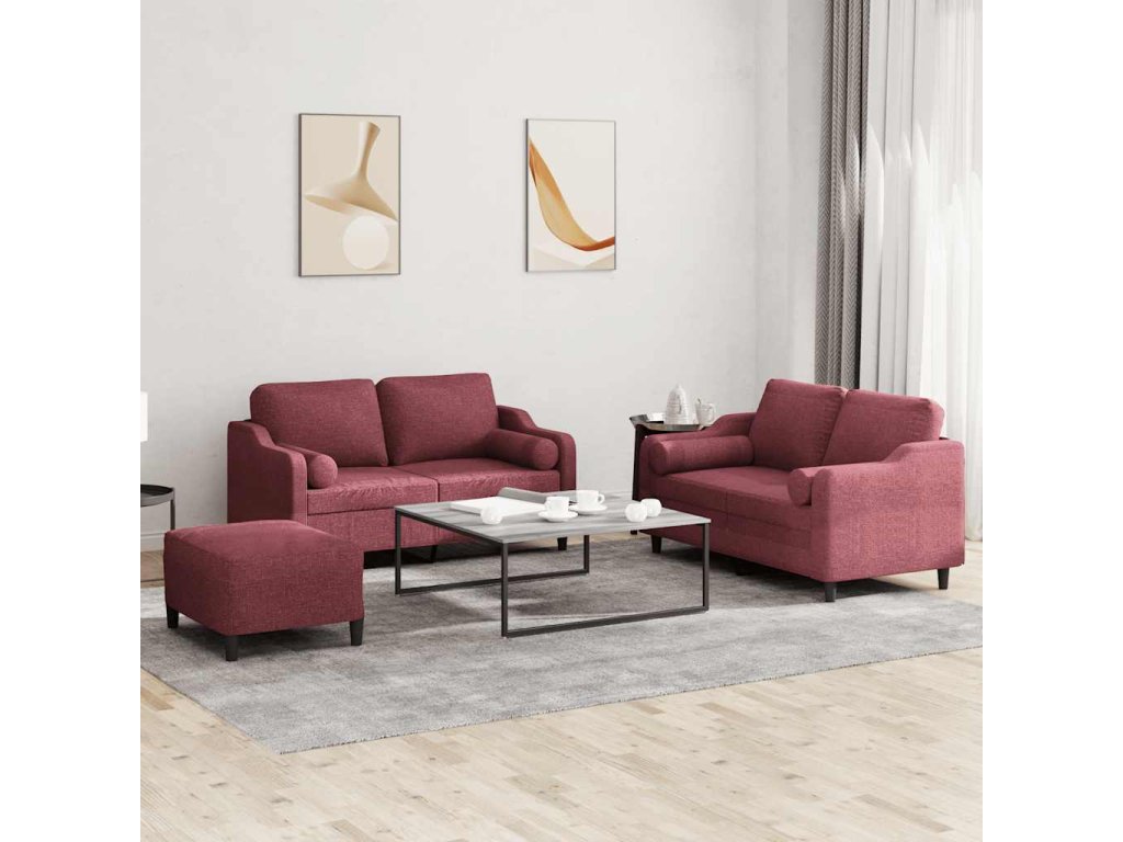 3dílná sedací souprava s polštáři vínová textil 3201832