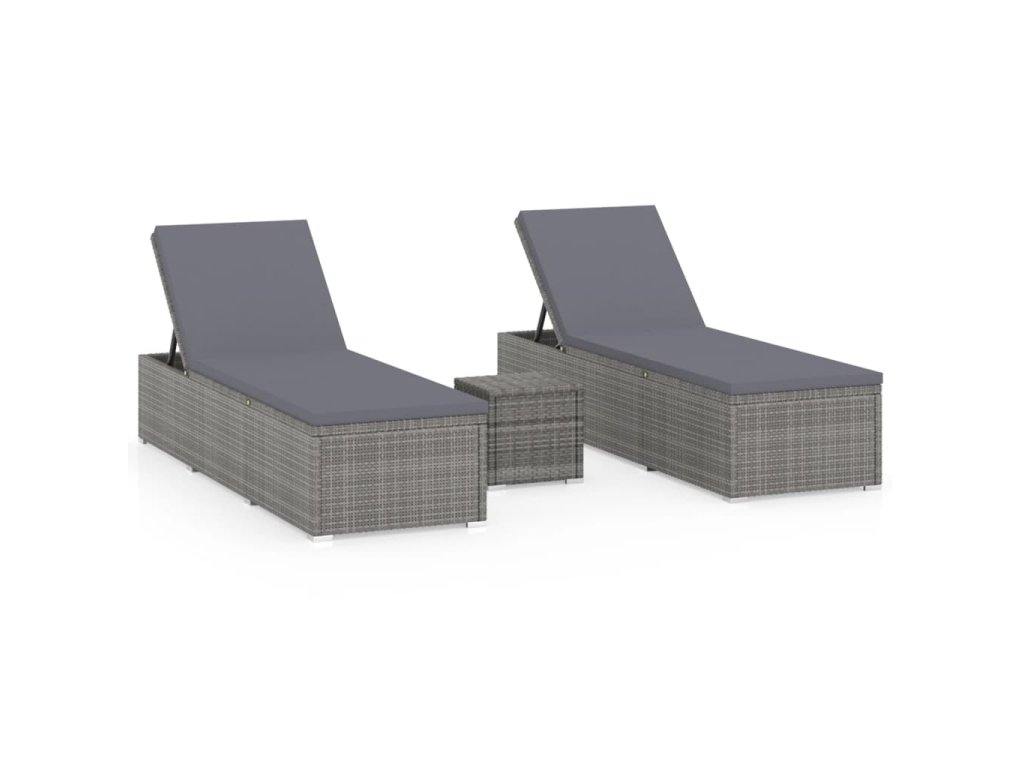 3dílná zahradní lehátka s čajovým stolkem polyratan šedá 3057665