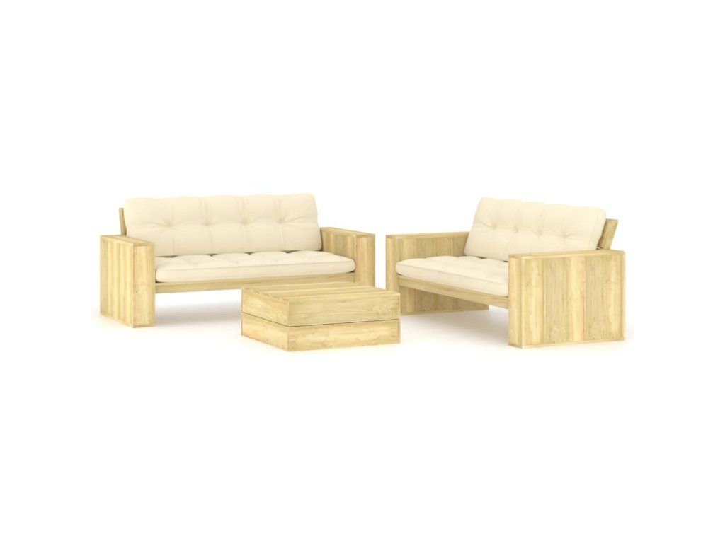 3dílná zahradní sedací souprava a podušky impregnovaná borovice 3065785