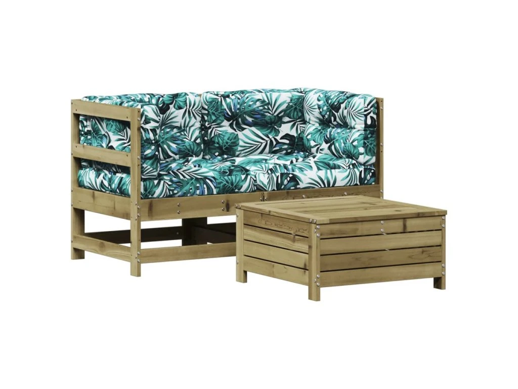 3dílná zahradní sedací souprava a podušky impregnovaná borovice 3250759