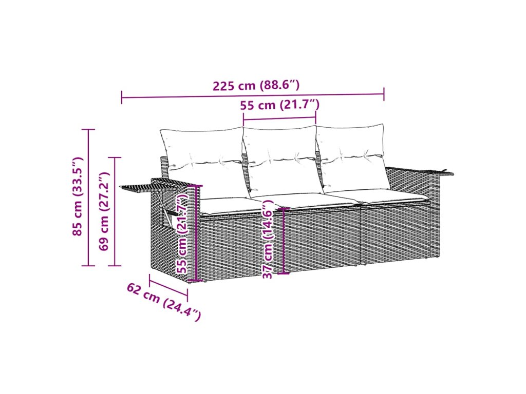 Tato zahradní sedací souprava je dokonalým doplňkem vaší zahrady, terasy nebo dvorku a poskytne vám pohodlné a příjemné místo, kde si můžete povídat s rodinou a přáteli nebo jen tak odpočívat a užívat si pobyt venku.