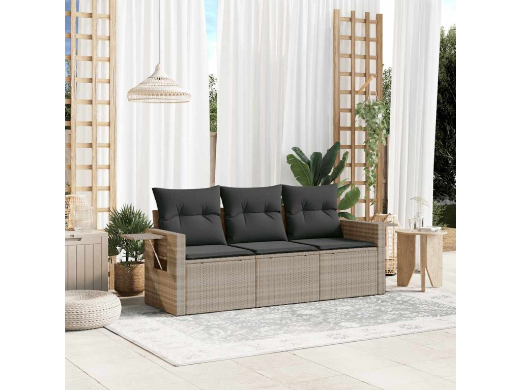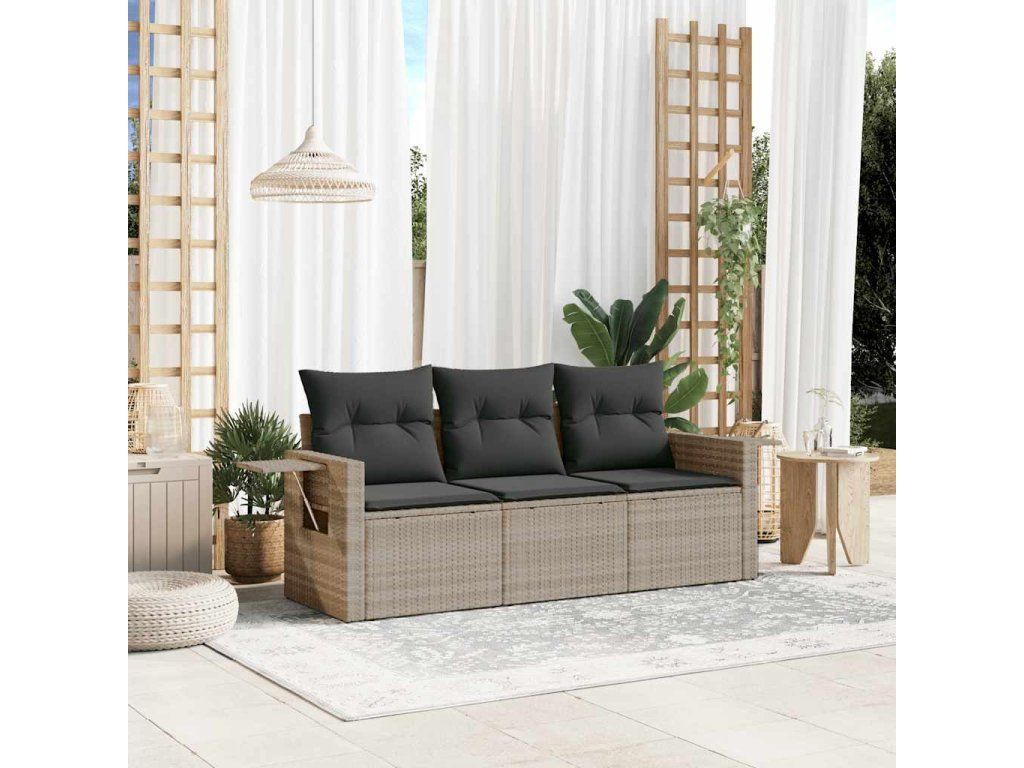 3dílná zahradní sedací souprava a podušky světle šedá polyratan 3219861