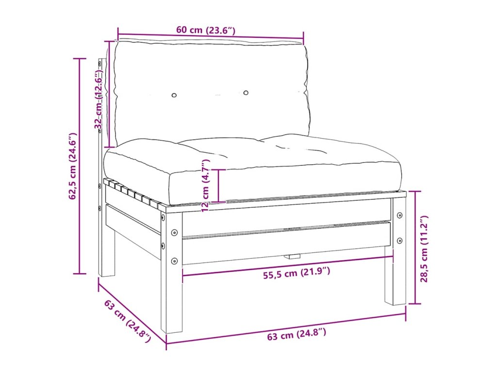 - Rozměry středové pohovky: 63,5 x 63,5 x 62,5 cm (Š x H x V)