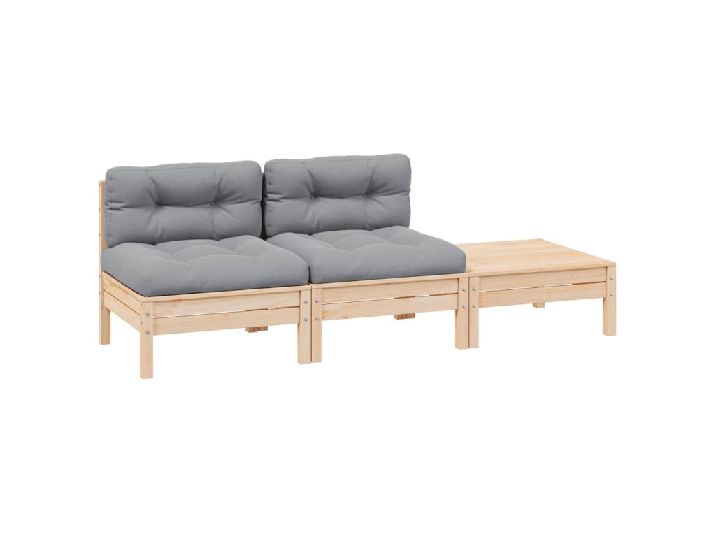 3dílná zahradní sedací souprava a šedé podušky masivní borovice 806681