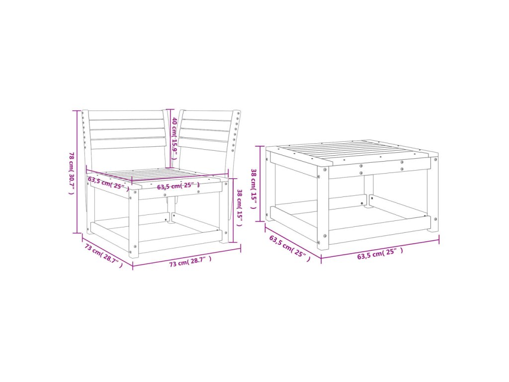 3dílná zahradní sedací souprava bílá masivní borové dřevo 3216986