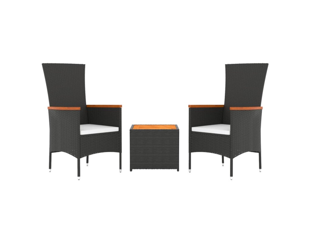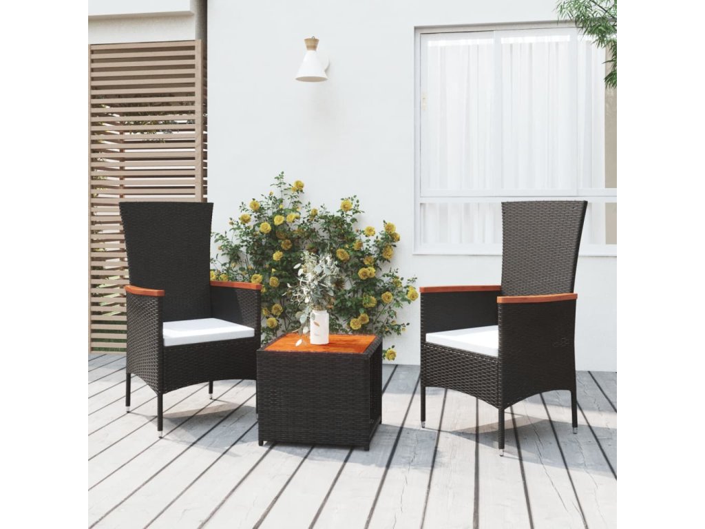 3dílná zahradní sedací souprava černá polyratan masivní akácie 3157648