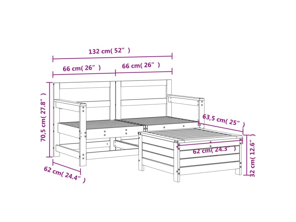 3dílná zahradní sedací souprava impregnovaná borovice 3250763