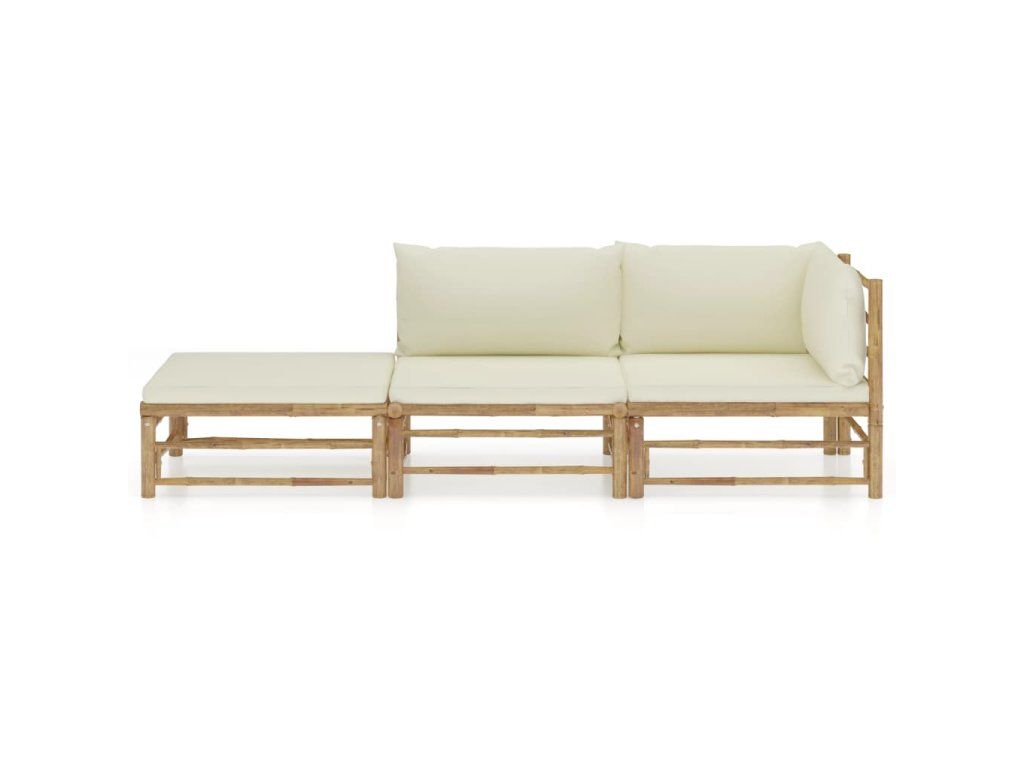 3dílná zahradní sedací souprava + krémově bílé podušky bambus 3058245