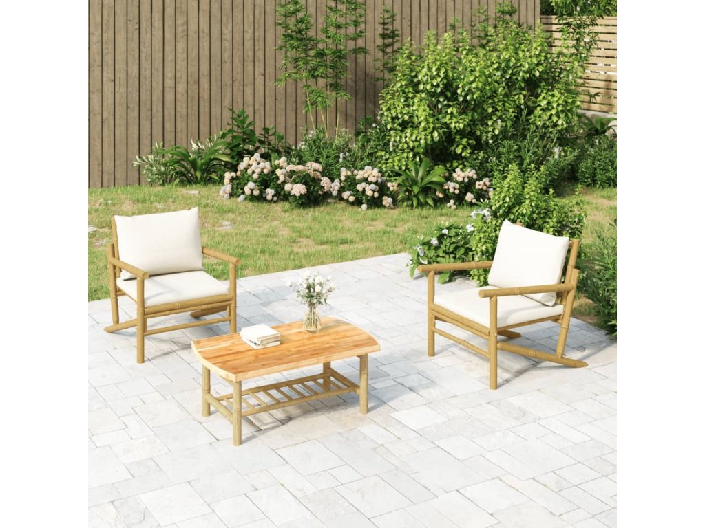 3dílná zahradní sedací souprava krémově bílé podušky bambus 3156479