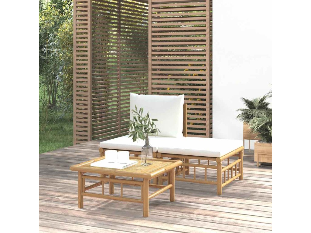 3dílná zahradní sedací souprava krémově bílé podušky bambus 362297