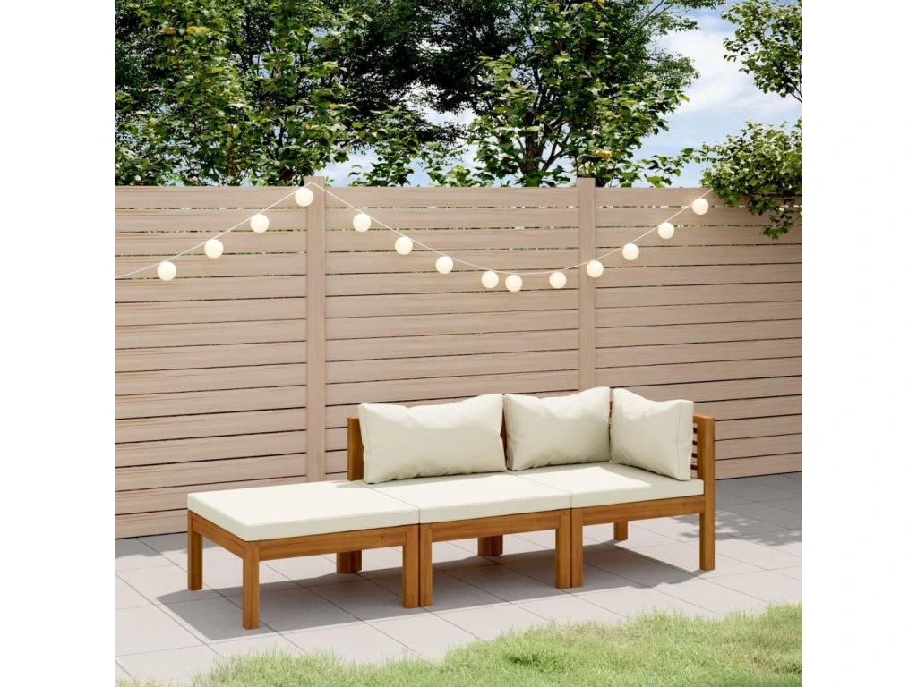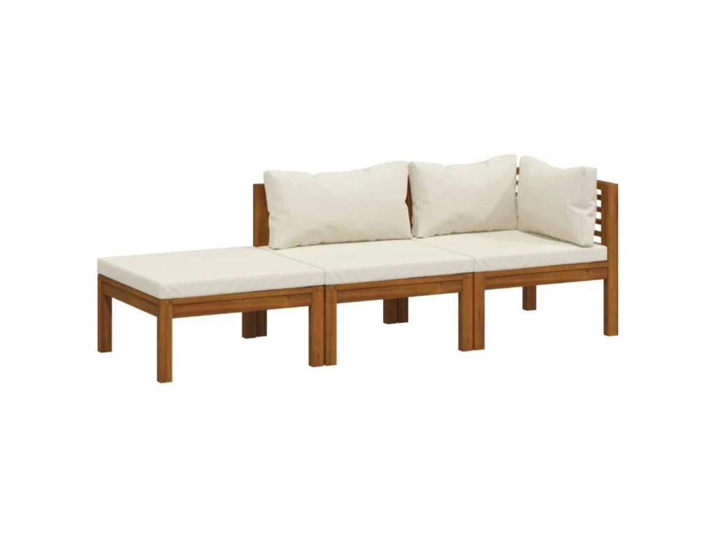 3dílná zahradní sedací souprava krémové podušky masivní akácie 3086953
