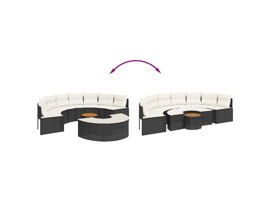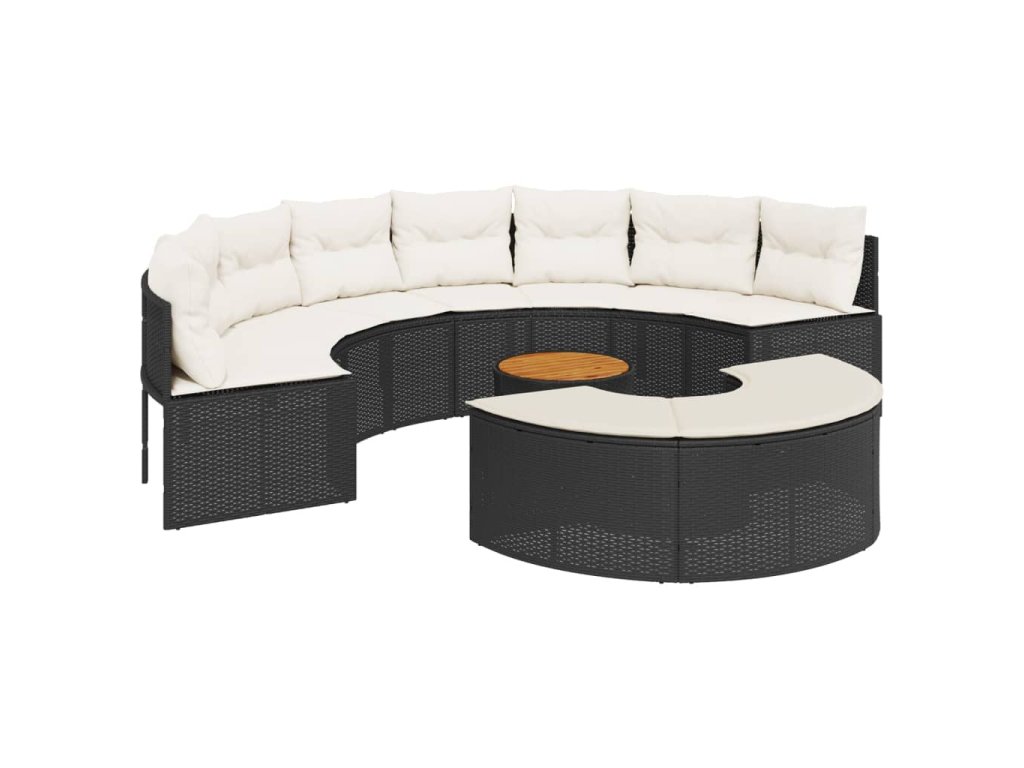 3dílná zahradní sedací souprava půlkruhová černá polyratan 3262078