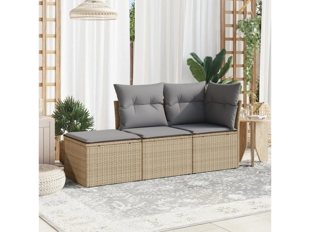 3dílná zahradní sedací souprava s poduškami béžová polyratan 3249308