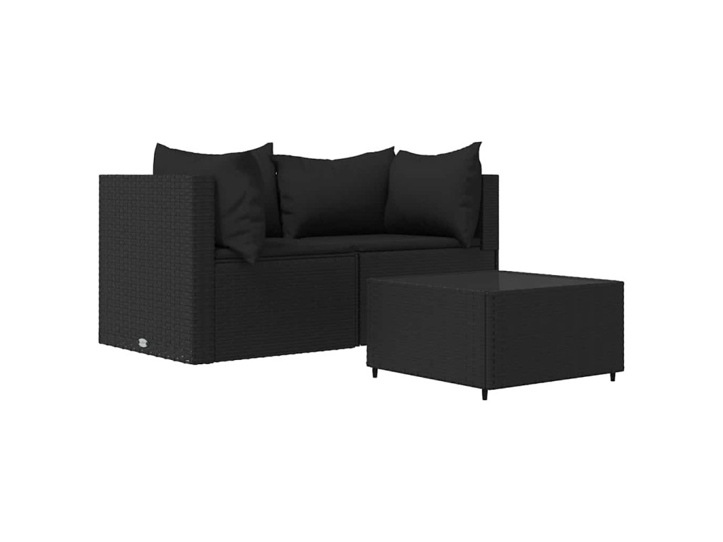 3dílná zahradní sedací souprava s poduškami černá polyratan 319779