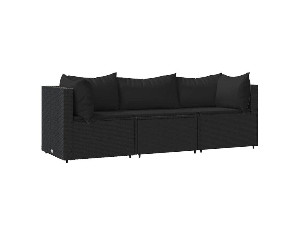 3dílná zahradní sedací souprava s poduškami černá polyratan 319782