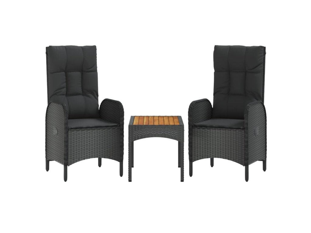 3dílná zahradní sedací souprava s poduškami černá polyratan 319908