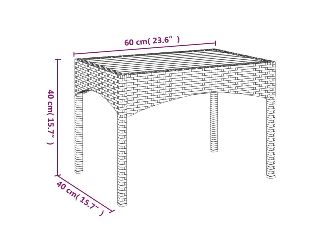- Materiál: masivní akáciové dřevo s olejovou povrchovou úpravou, PE ratan, práškově lakovaná ocel