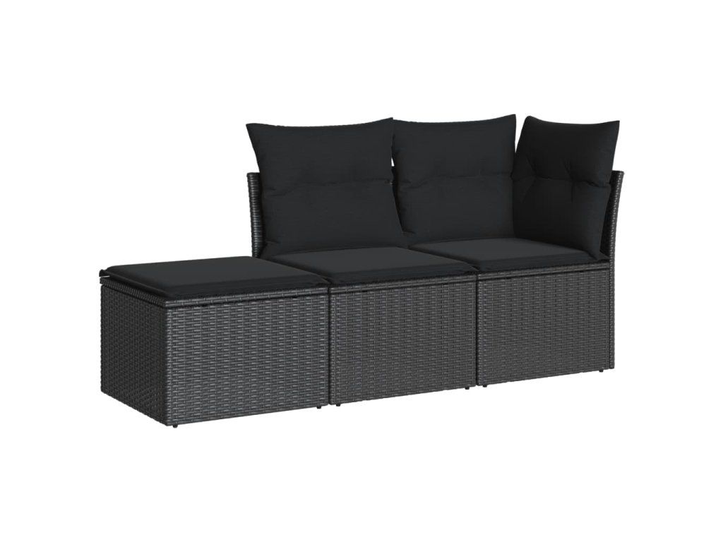 3dílná zahradní sedací souprava s poduškami černá polyratan 3249304