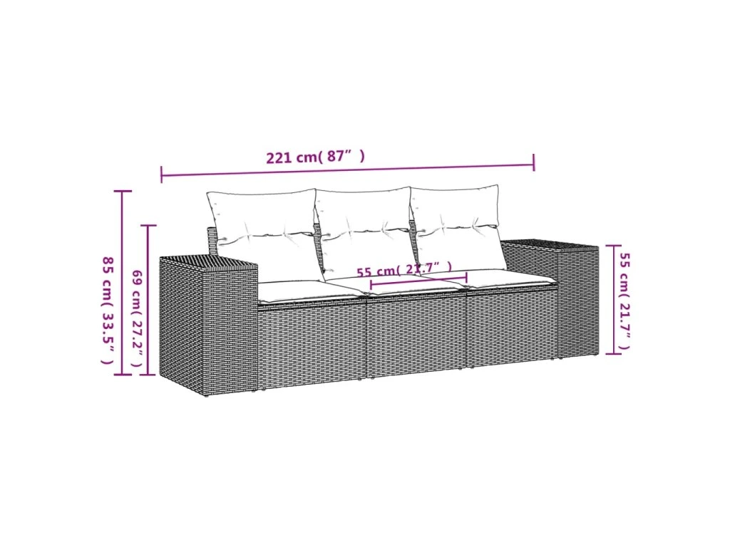 Tato zahradní sedací souprava je dokonalým doplňkem vaší zahrady, terasy nebo dvorku a poskytne vám pohodlné a příjemné místo, kde si můžete povídat s rodinou a přáteli nebo jen tak odpočívat a užívat si pobyt venku.