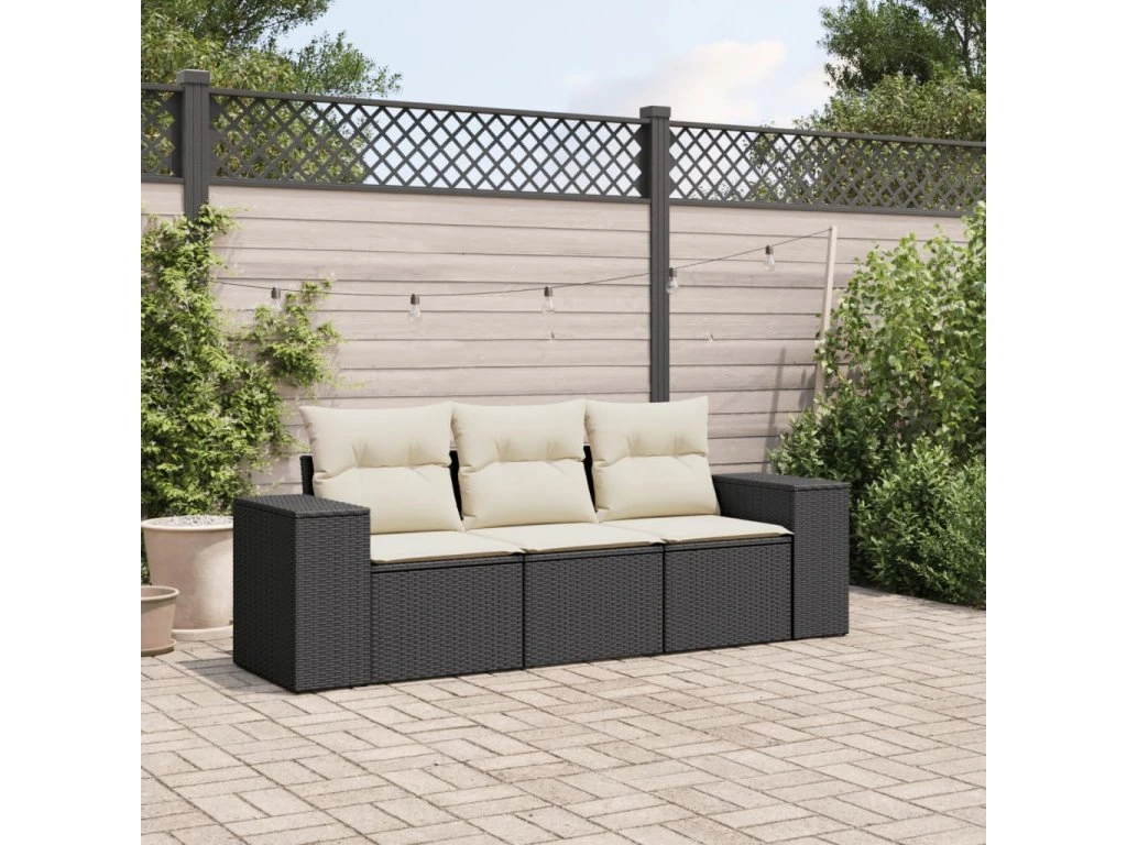 3dílná zahradní sedací souprava s poduškami černá polyratan 3254593