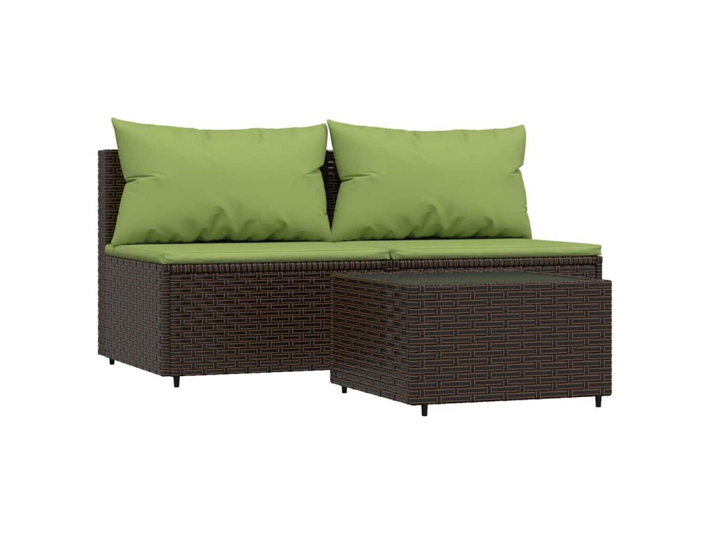 3dílná zahradní sedací souprava s poduškami hnědá polyratan 319835