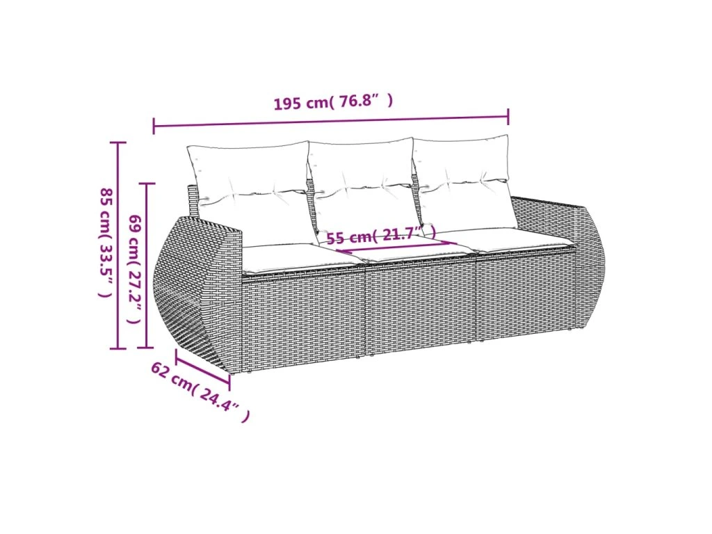 Tato zahradní sedací souprava je dokonalým doplňkem vaší zahrady, terasy nebo dvorku a poskytne vám pohodlné a příjemné místo, kde si můžete povídat s rodinou a přáteli nebo jen tak odpočívat a užívat si pobyt venku.