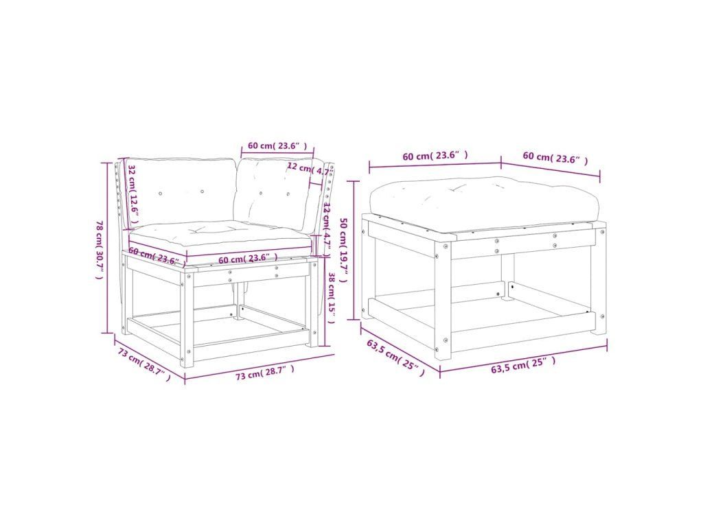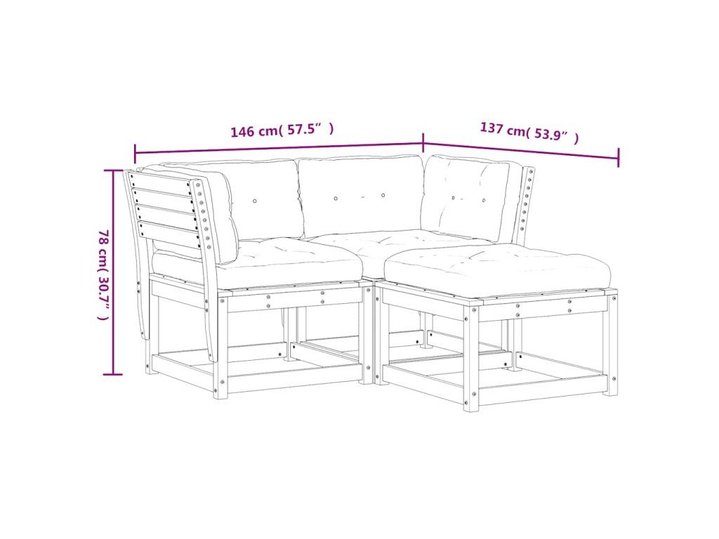 3dílná zahradní sedací souprava s poduškami masivní borovice 3216990