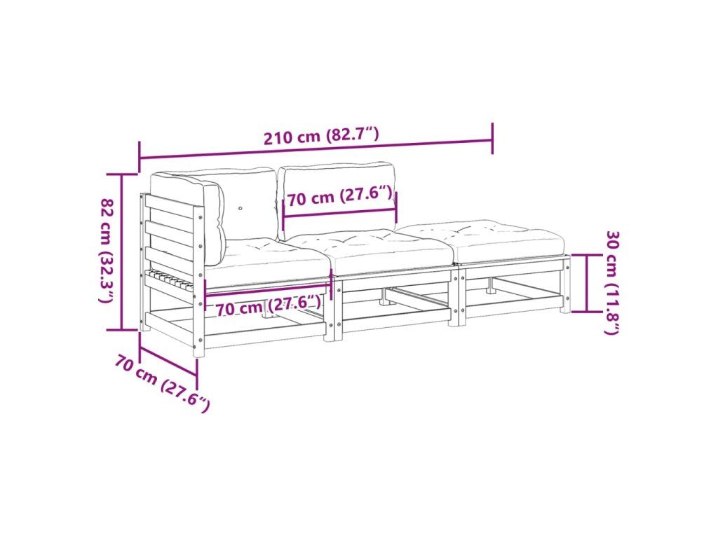 3dílná zahradní sedací souprava s poduškami masivní borovice 3295831