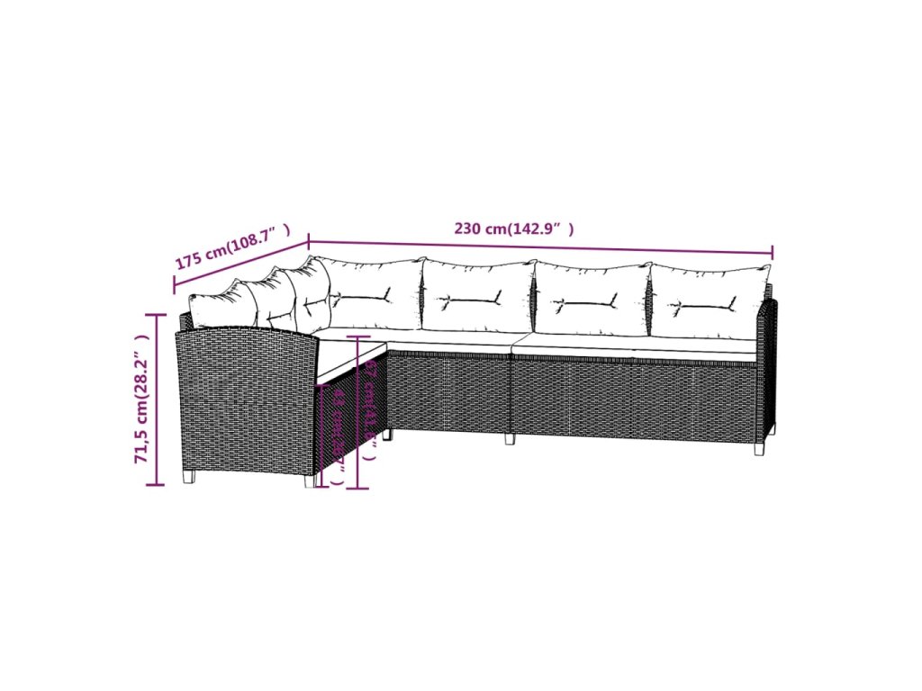 - Rozměry pohovky: 230 x 175 x 71,5 cm (Š x H x V)