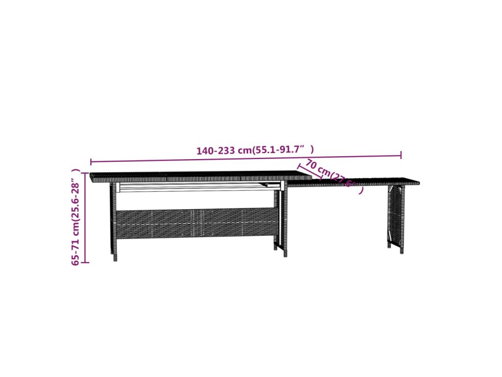 - Rozměry stolu: 140/233 x 70 x 65/71 cm (D x Š x V)