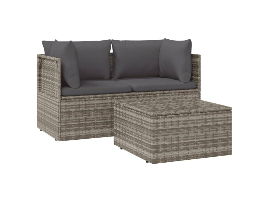 3dílná zahradní sedací souprava s poduškami šedá polyratan 318675
