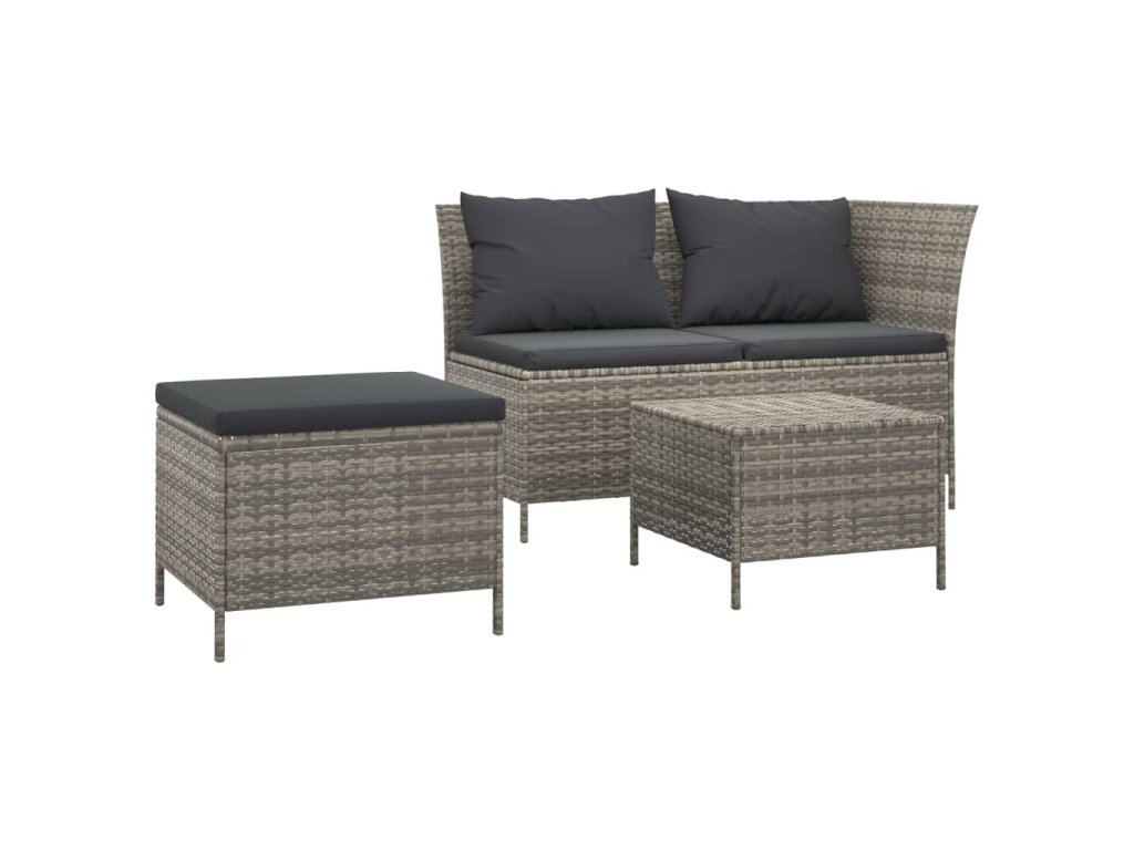 3dílná zahradní sedací souprava s poduškami šedá polyratan 319693
