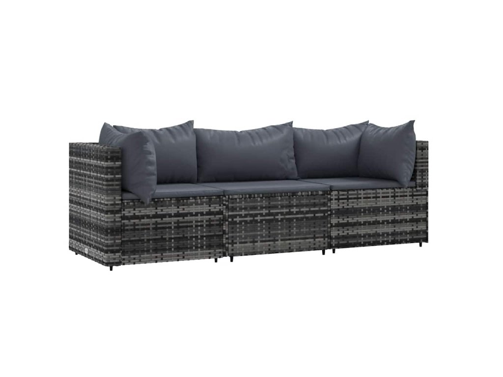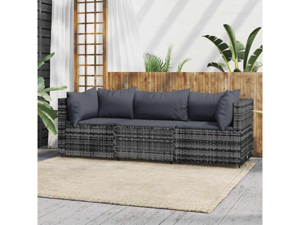 3dílná zahradní sedací souprava s poduškami šedá polyratan 319766