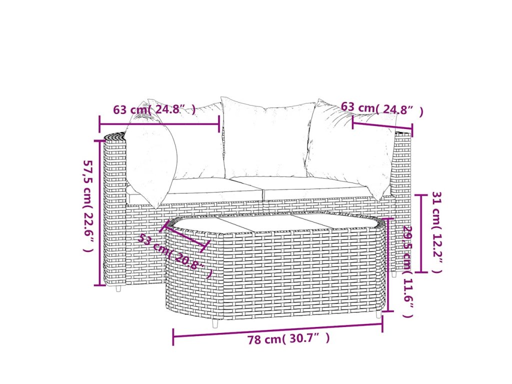 - Rozměry (každá): 63 x 63 x 57,5 cm (Š x H x V)