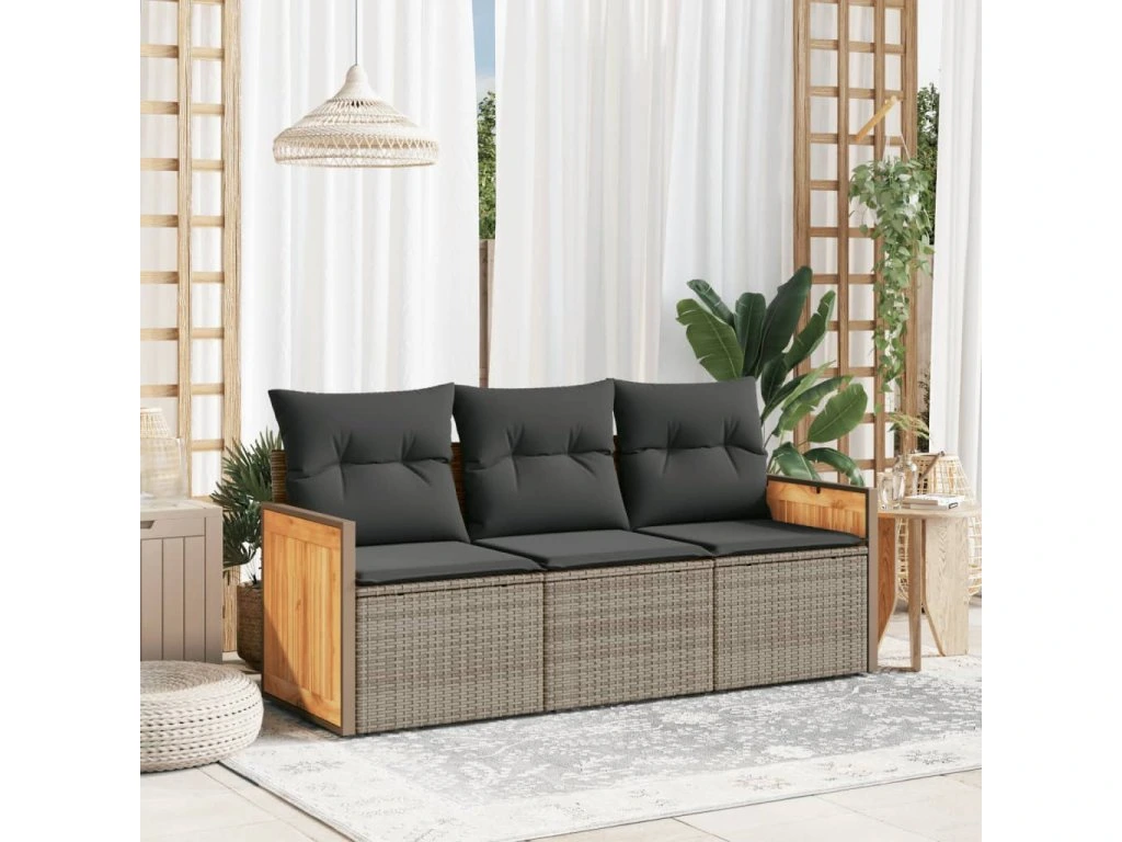3dílná zahradní sedací souprava s poduškami šedá polyratan 3227439
