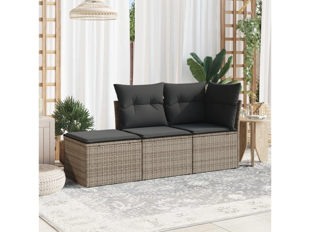3dílná zahradní sedací souprava s poduškami šedá polyratan 3249309