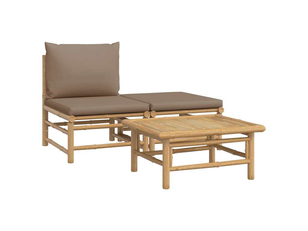 3dílná zahradní sedací souprava s taupe poduškami bambus 362283