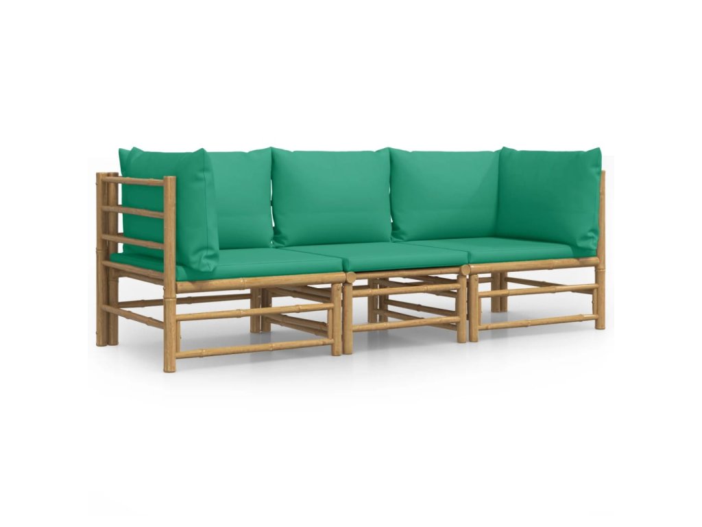 3dílná zahradní sedací souprava se zelenými poduškami bambus 3155151