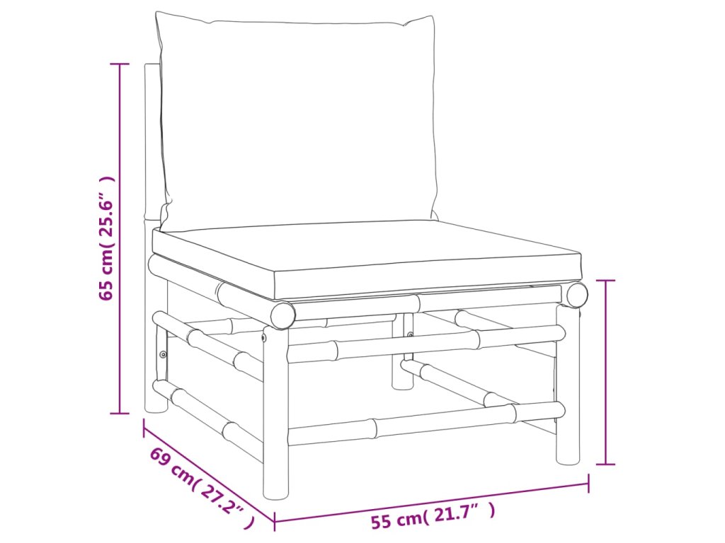 3dílná zahradní sedací souprava světle šedé podušky bambus 3155087
