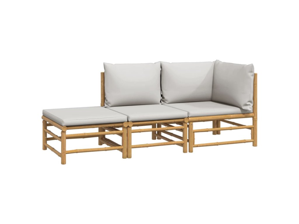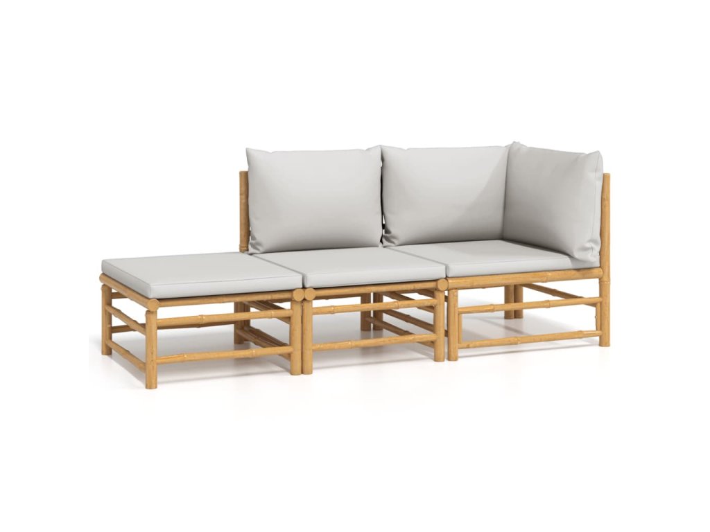 3dílná zahradní sedací souprava světle šedé podušky bambus 3155108