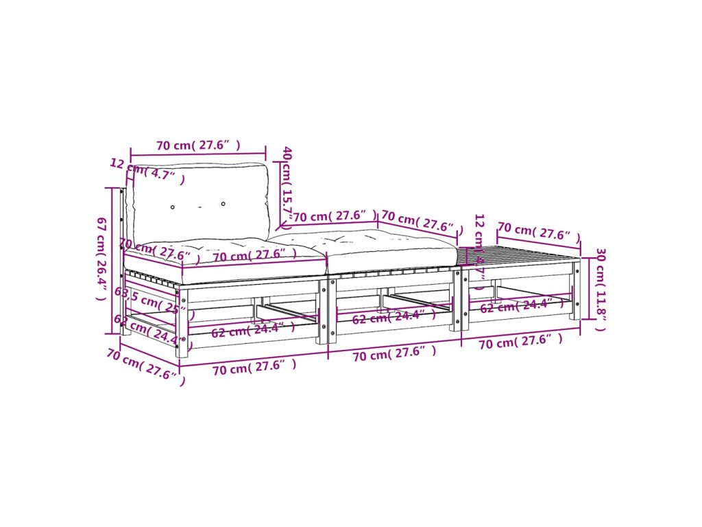 3dílná zahradní souprava s poduškami bílá masivní borovice 805766