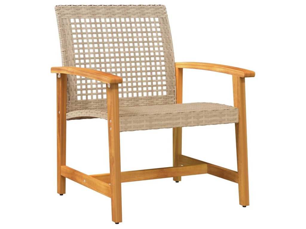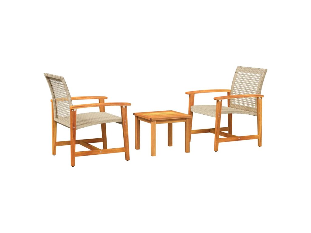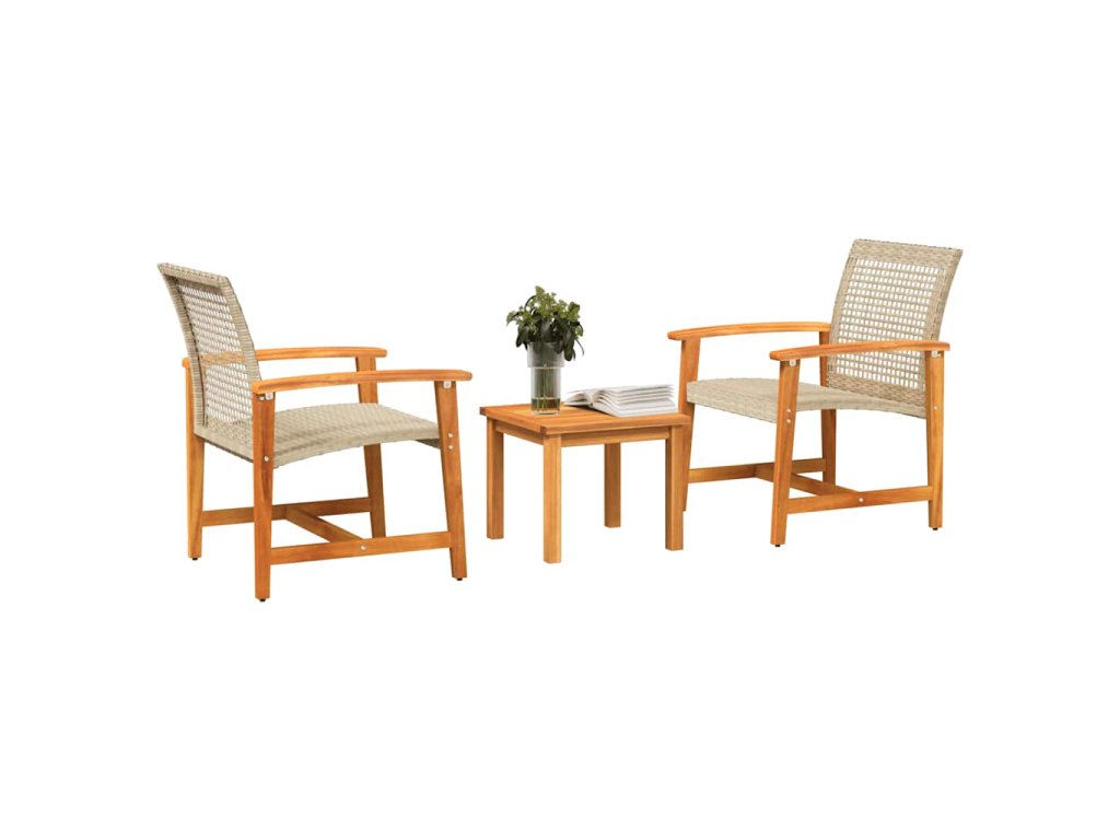 3dílný bistro set béžový polyratan a akáciové dřevo 367603