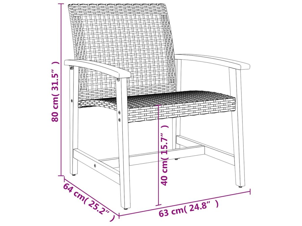 - Materiál: PE ratan, masivní akáciové dřevo, kov