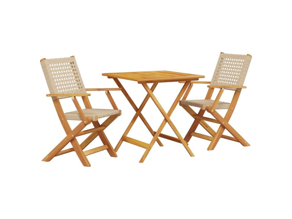 3dílný bistro set béžový polyratan a masivní dřevo 3281876