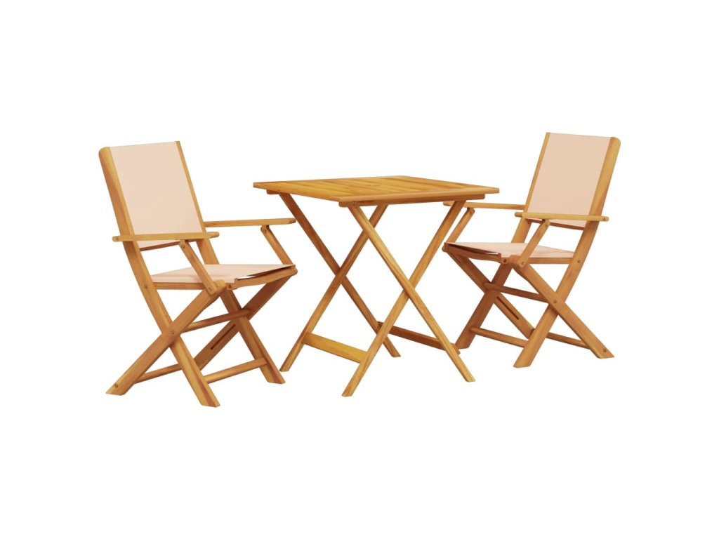 3dílný bistro set béžový textil a masivní dřevo 3281883